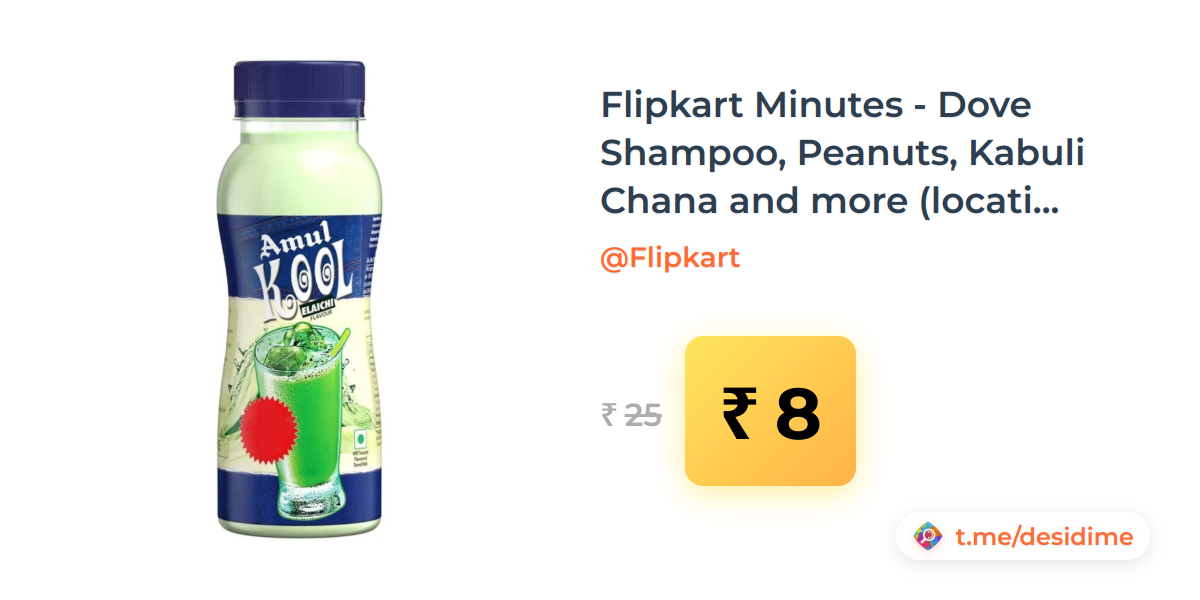 68% off on - Flipkart Minutes - Dove Shampoo, Peanuts, Kabuli Chana and more (location specific) - Rs. 8