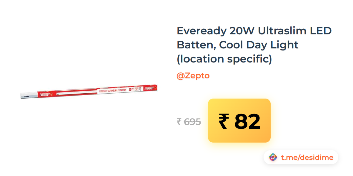 88% off on - Eveready 20W Ultraslim LED Batten, Cool Day Light (location specific) - Rs. 82