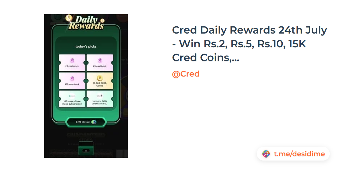 Cred Daily Rewards 24th July - Win Rs.2, Rs.5, Rs.10, 15K Cred Coins, Jiosaavan, turmeric latte premix