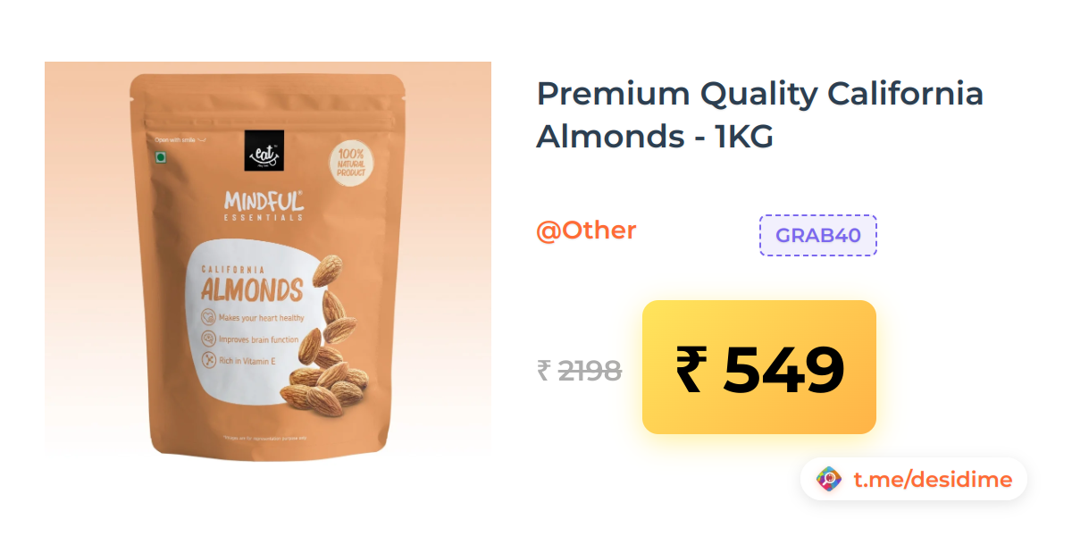 75% off on - Premium Quality California Almonds - 1KG - Rs. 549