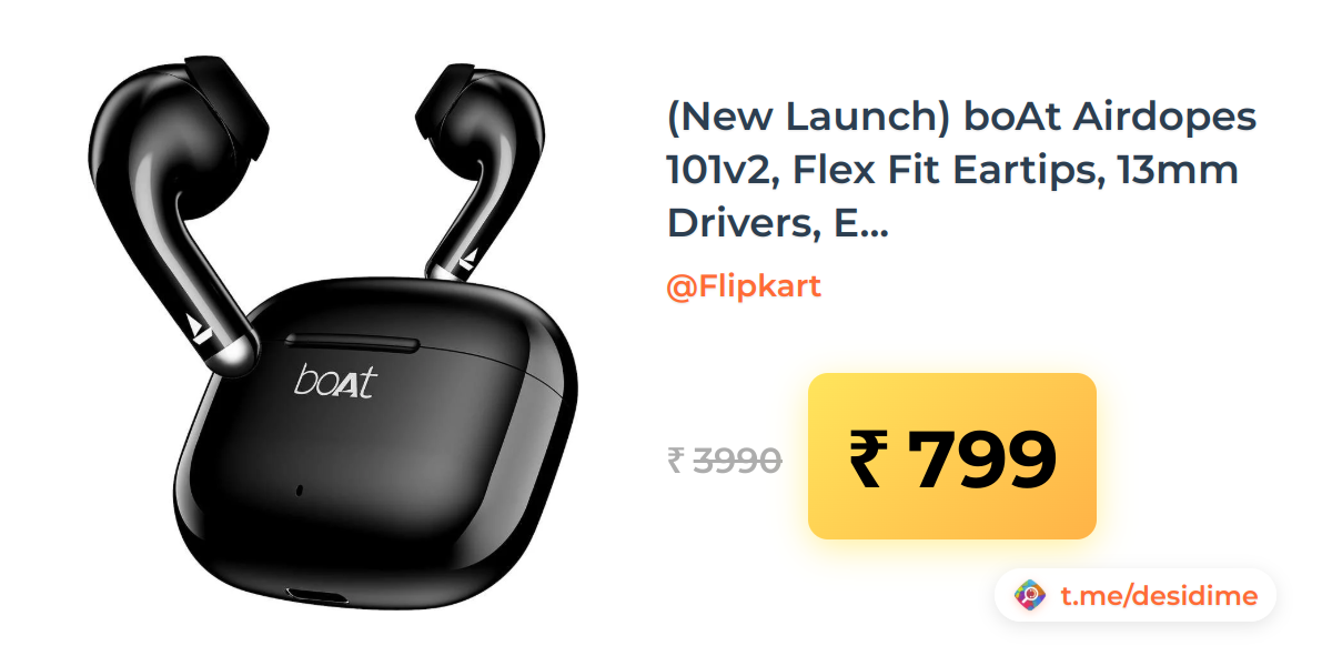 80% off on - (New Launch) boAt Airdopes 101v2, Flex Fit Eartips, 13mm Drivers, ENx, Fast Charge, 35Hrs Battery Bluetooth - Rs. 799