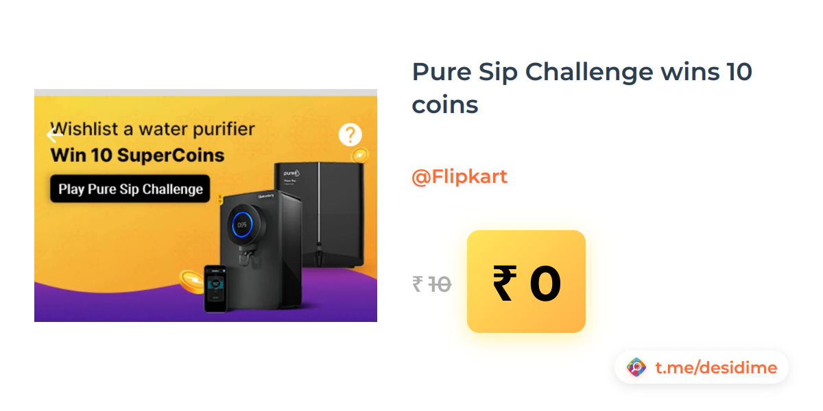100% off on - Pure Sip Challenge wins 10 coins - Rs. 0
