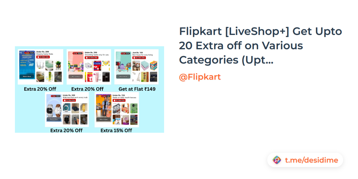 🌡347° - Flipkart [LiveShop+] Get Upto 20 Extra off on Various Categories (Upto 08:00Pm)