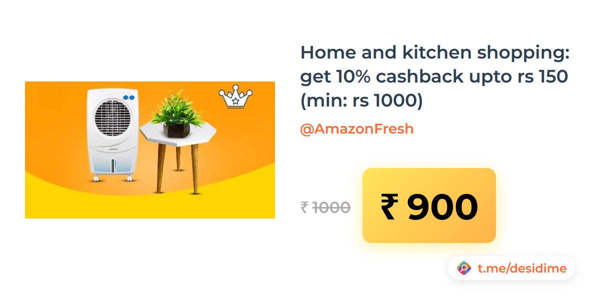 10% off on - Home and kitchen shopping: get 10% cashback upto rs 150 (min: rs 1000) - Rs. 900