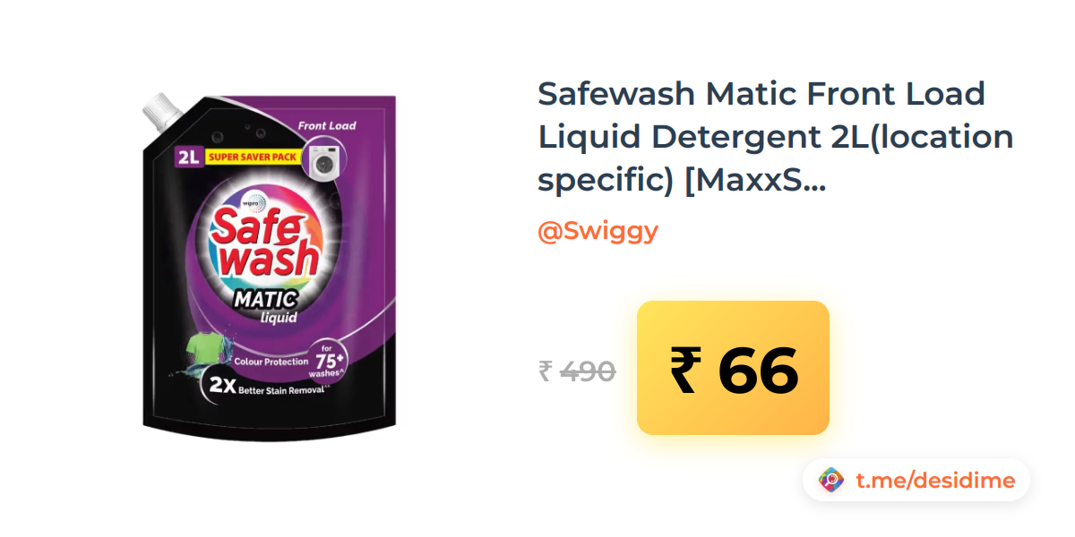 87% off on - Safewash Matic Front Load Liquid Detergent 2L(location specific) [MaxxSaver] - Rs. 66
