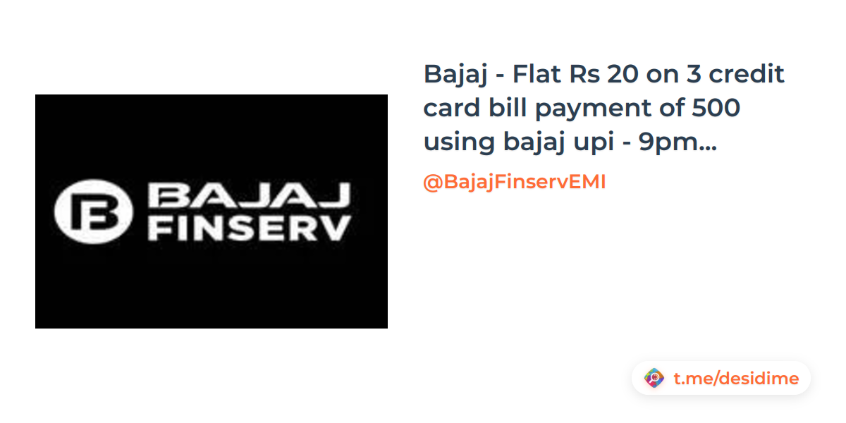 Bajaj - Flat Rs 20 on 3 credit card bill payment of 500 using bajaj upi - 9pm - 11pm ( Verified got 20 + notification)