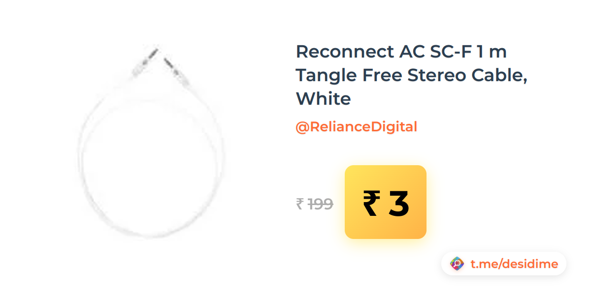 98% off on - Reconnect AC SC-F 1 m Tangle Free Stereo Cable, White - Rs. 3