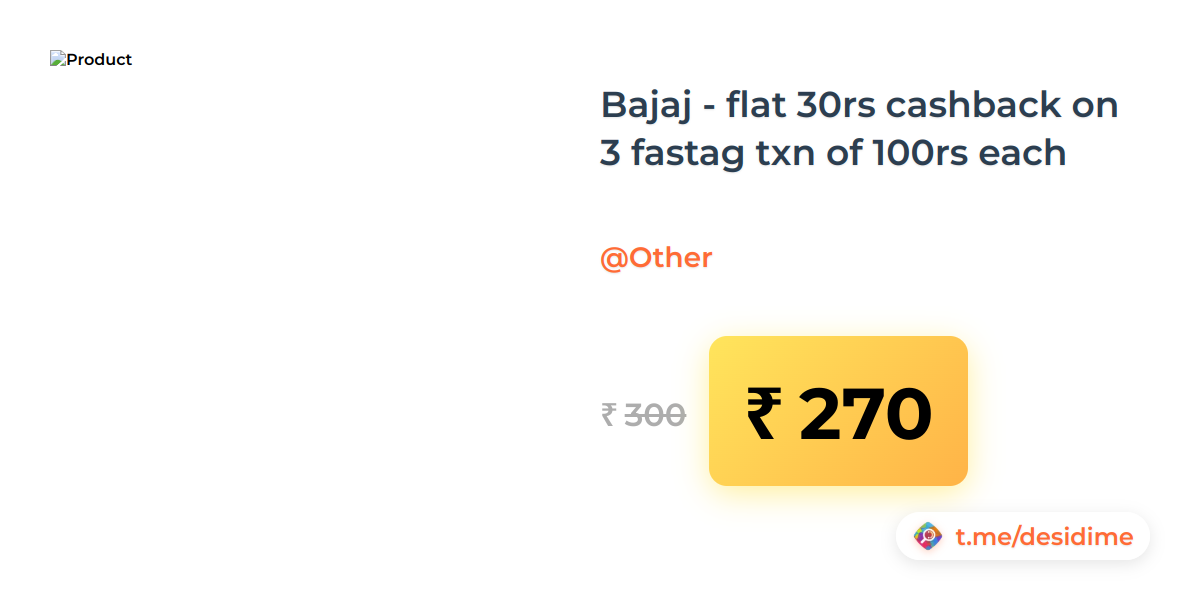 10% off on - Bajaj - flat 30rs cashback on 3 fastag txn of 100rs each - Rs. 270