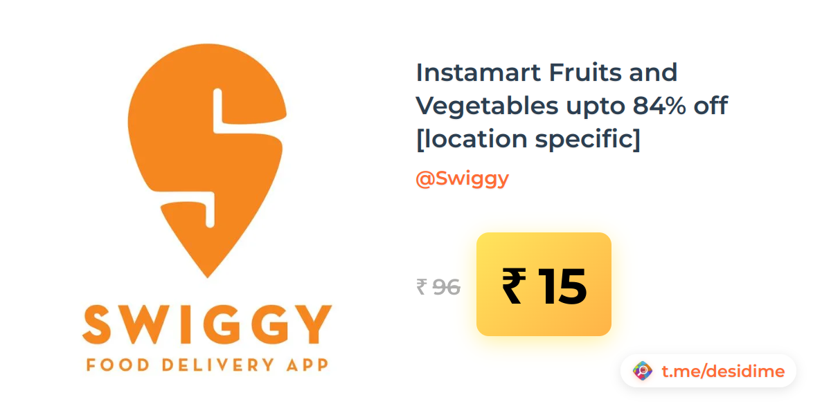 84% off on - Instamart Fruits and Vegetables upto 84% off [location specific] - Rs. 15