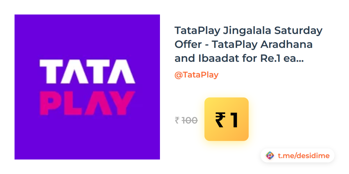 99% off on - TataPlay Jingalala Saturday Offer - TataPlay Aradhana and Ibaadat for Re.1 each (30 Days) 26Jul - Rs. 1
