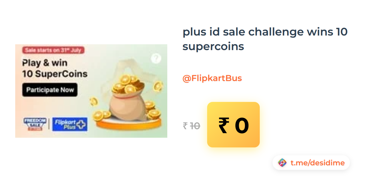 100% off on - plus id sale challenge wins 10 supercoins - Rs. 0