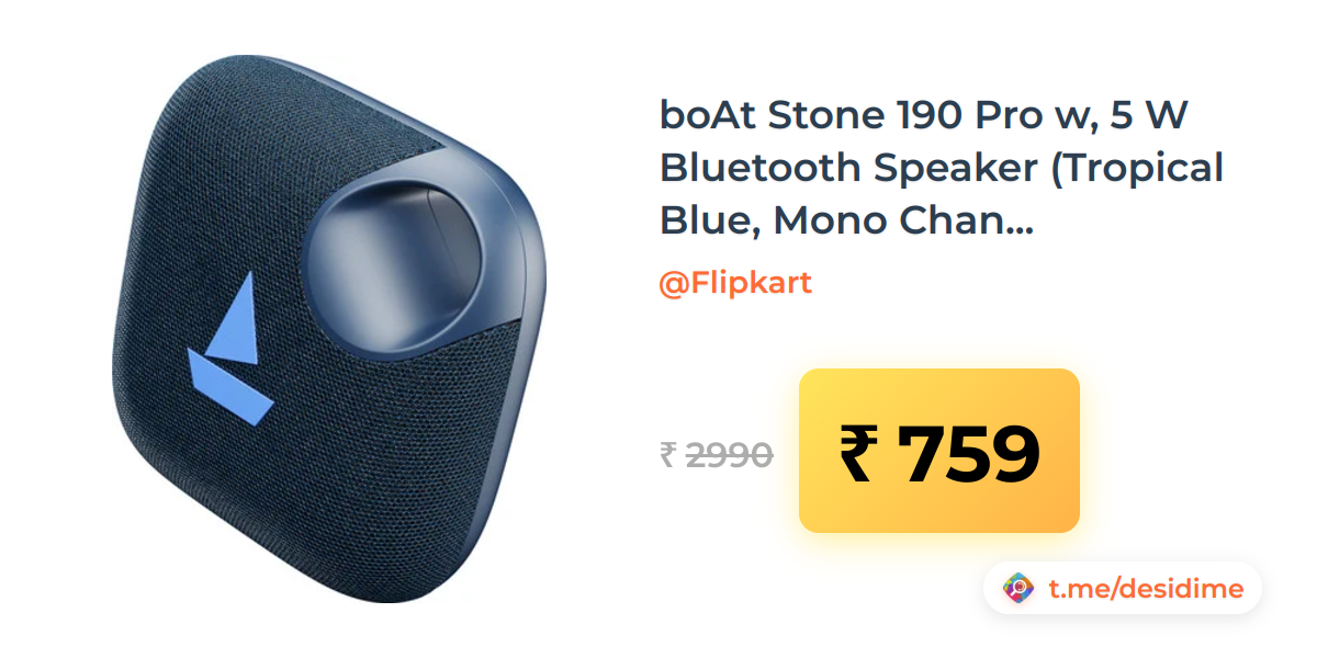 75% off on - boAt Stone 190 Pro w, 5 W Bluetooth Speaker (Tropical Blue, Mono Channel) - Rs. 759