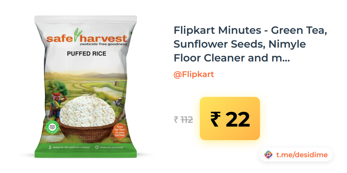 80% off on - Flipkart Minutes - Green Tea, Sunflower Seeds, Nimyle Floor Cleaner and more (location specific) - Rs. 22