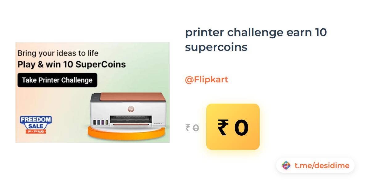 0% off on - printer challenge earn 10 supercoins - Rs. 0