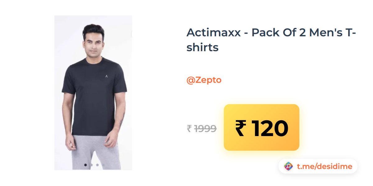 94% off on - Actimaxx - Pack Of 2 Men's T-shirts - Rs. 120