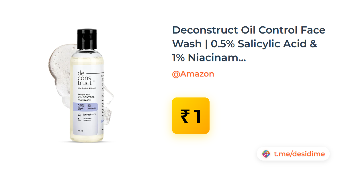 Deconstruct Oil Control Face Wash | 0.5% Salicylic Acid & 1% Niacinamide | Controls oil, reduces acne | Calms & refreshes skin with a cooling feel | For oily, acne & pimple-prone skin|100ml - Rs. 1