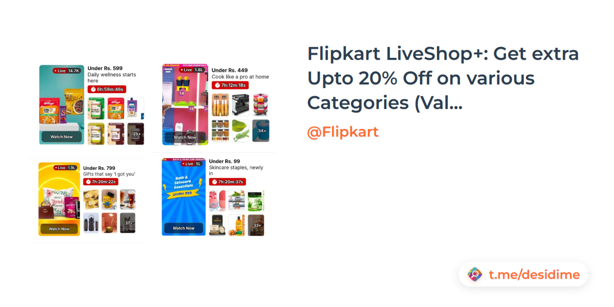 Flipkart LiveShop+: Get extra Upto 20% Off on various Categories (Valid Till 08:00pm)