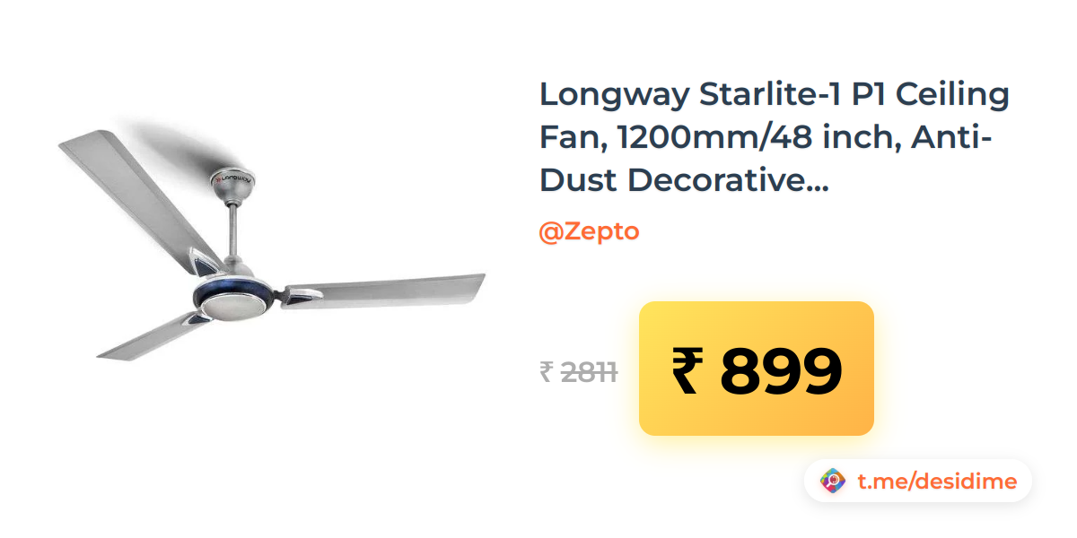 68% off on - Longway Starlite-1 P1 Ceiling Fan, 1200mm/48 inch, Anti-Dust Decorative Star Rated (Silver Blue) (location specific) - Rs. 899
