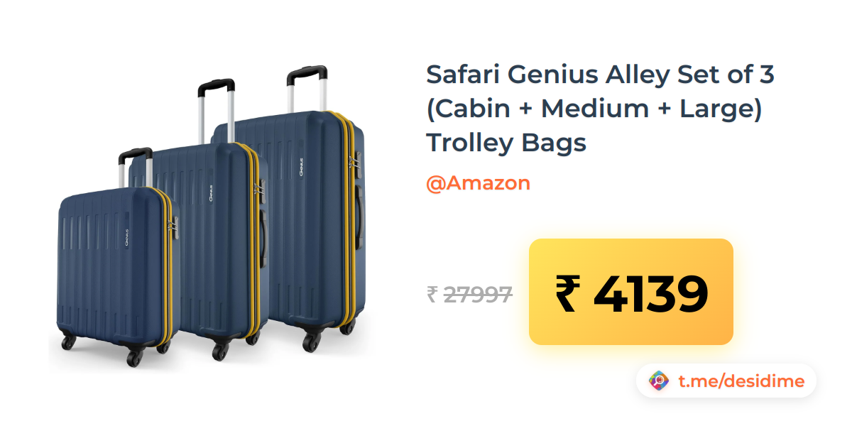 85% off on - Safari Genius Alley Set of 3 (Cabin + Medium + Large) Trolley Bags - Rs. 4139
