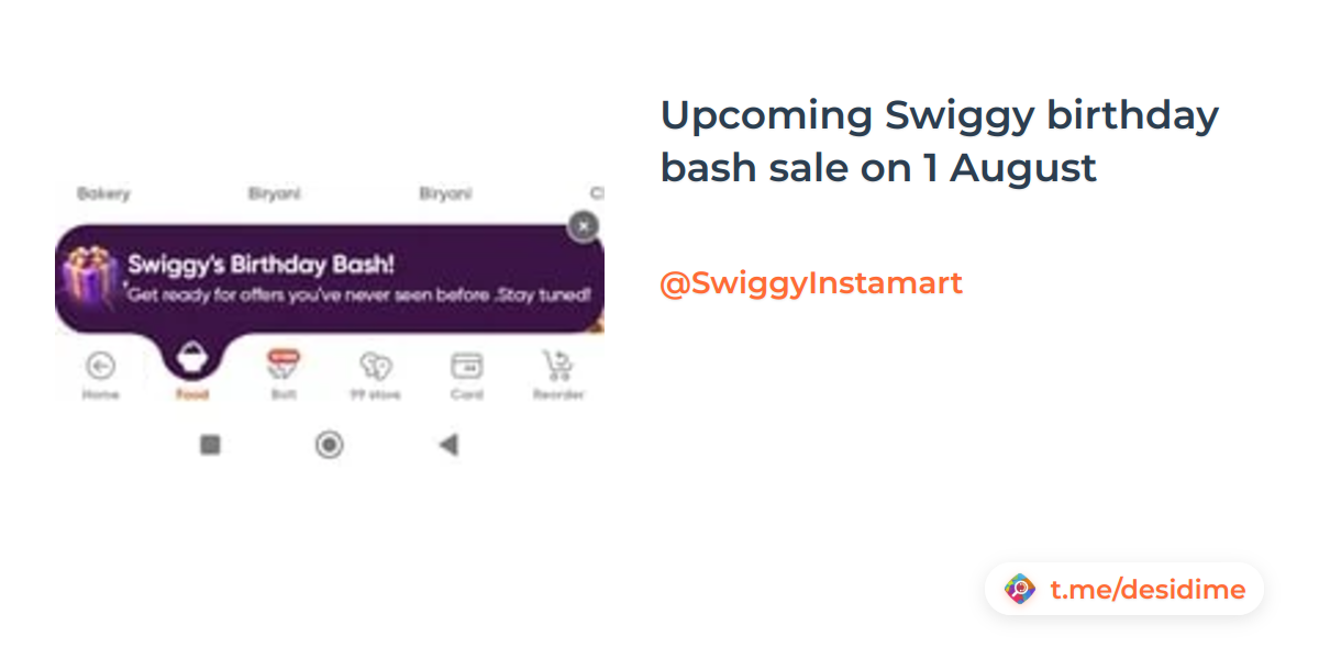 Upcoming Swiggy birthday bash sale on 1 August