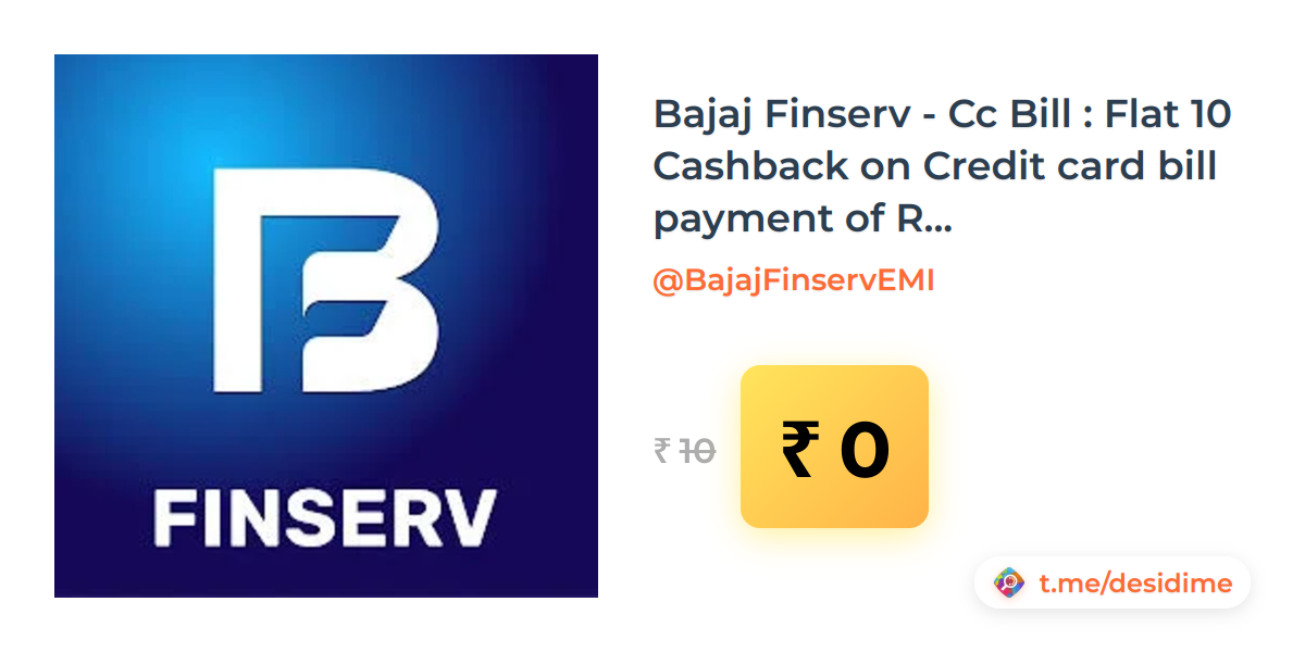 100% off on - Bajaj Finserv - Cc Bill : Flat 10 Cashback on Credit card bill payment of Rs. 10 [Valid Till 1st Aug 7PM] - Rs. 0