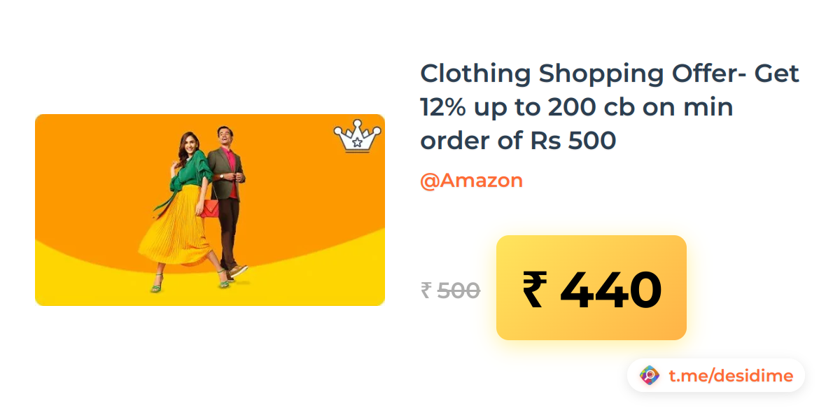🌡334° - Amazon - Clothing Shopping Offer- Get 12% up to 200 cb on min order of Rs 500