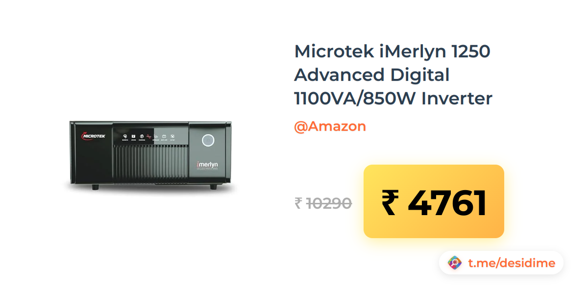 54% off on - Microtek iMerlyn 1250 Advanced Digital 1100VA/850W Inverter - Rs. 4761