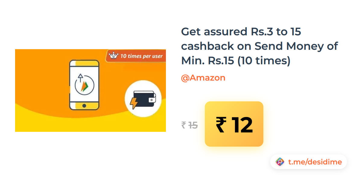 🌡356° - Amazon Get assured Rs.3 to 15 cashback on Send Money of Min. Rs.15 (10 times)