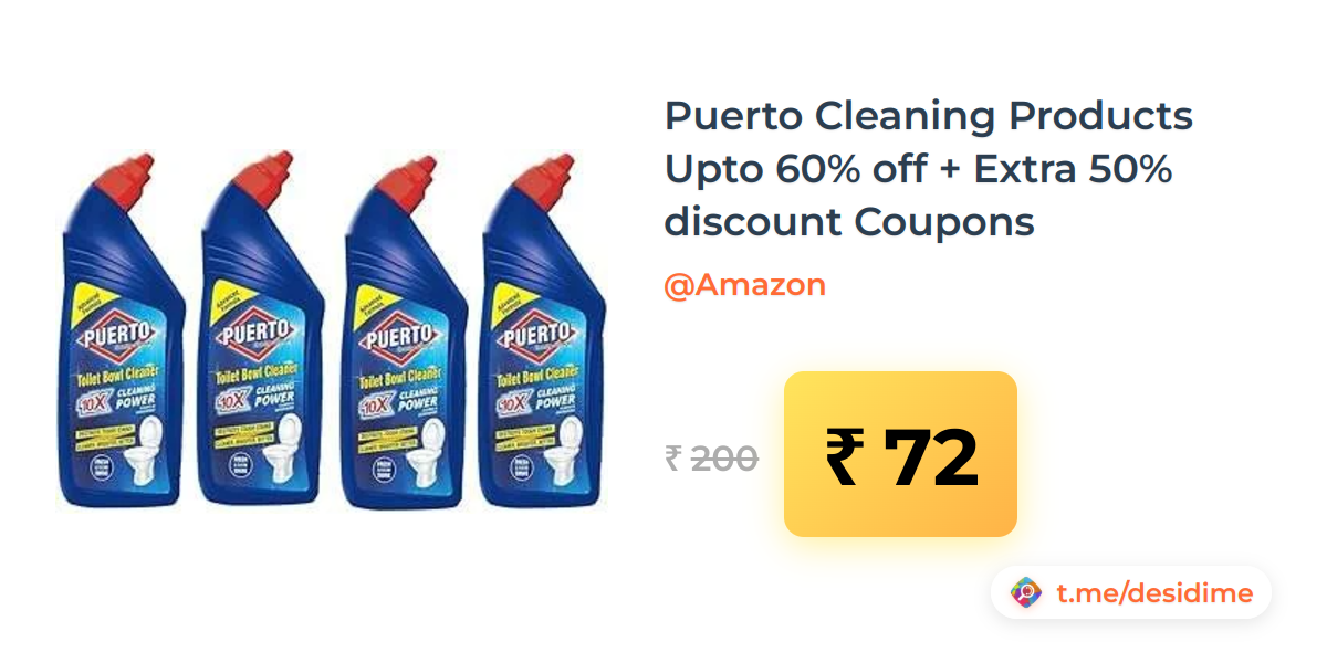 64% off on - Puerto Cleaning Products Upto 60% off + Extra 50% discount Coupons - Rs. 72
