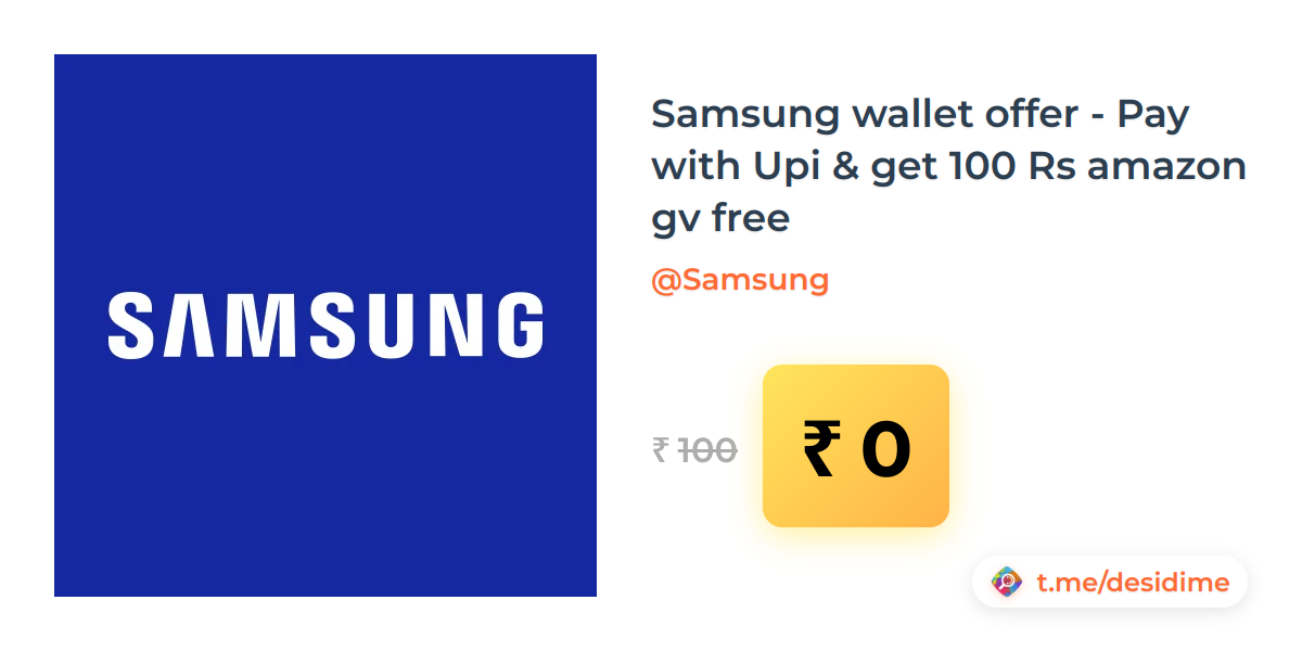 🌡379° -Samsung wallet offer - Pay with Upi & get 100 Rs amazon gv free