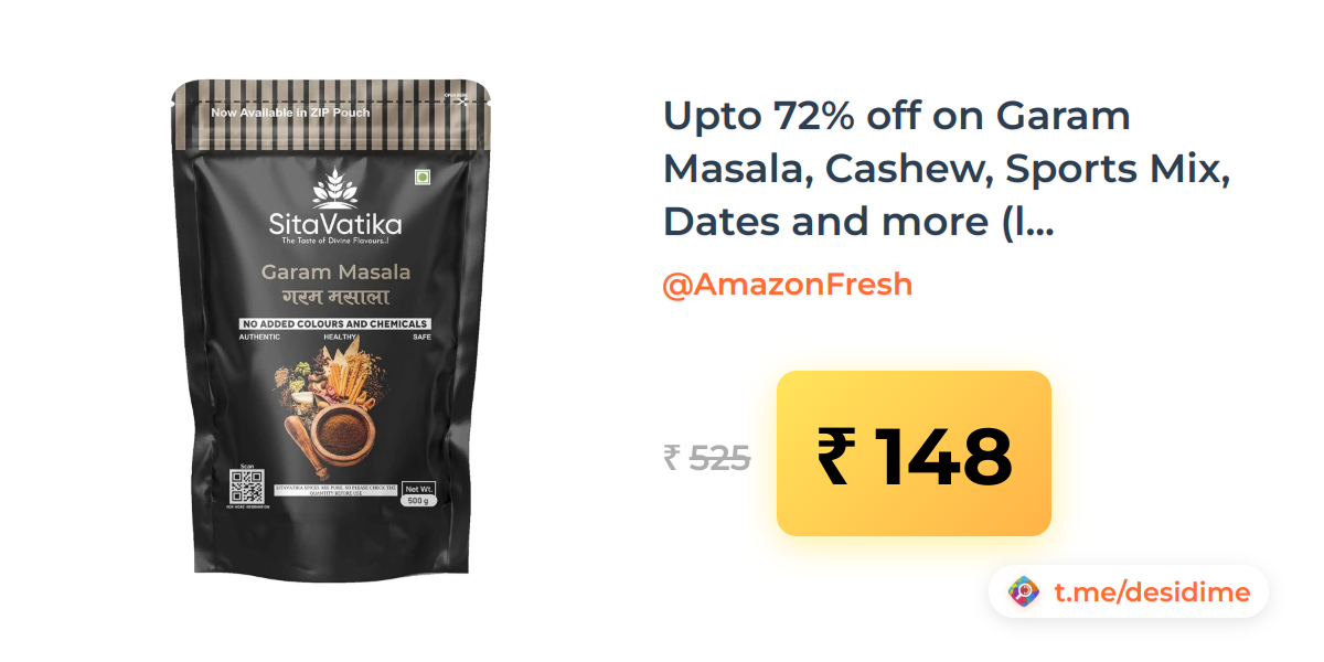 72% off on - Upto 72% off on Garam Masala, Cashew, Sports Mix, Dates and more (location specific) - Rs. 148