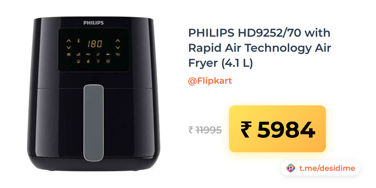 50% off on - PHILIPS HD9252/70 with Rapid Air Technology Air Fryer (4.1 L) - Rs. 5984