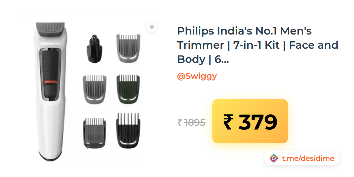🌡179° - Philips India's No.1 Men's Trimmer | 7-in-1 Kit | Face and Body | 60 min Runtime - Rs 379