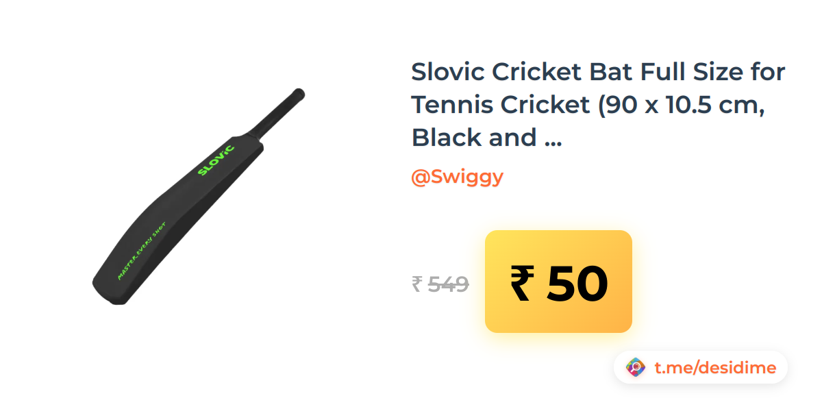 91% off on - Slovic Cricket Bat Full Size for Tennis Cricket (90 x 10.5 cm, Black and Neon) (location specific) - Rs. 50