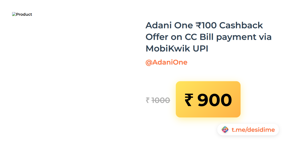 10% off on - Adani One ₹100 Cashback Offer on CC Bill payment via MobiKwik UPI - Rs. 900