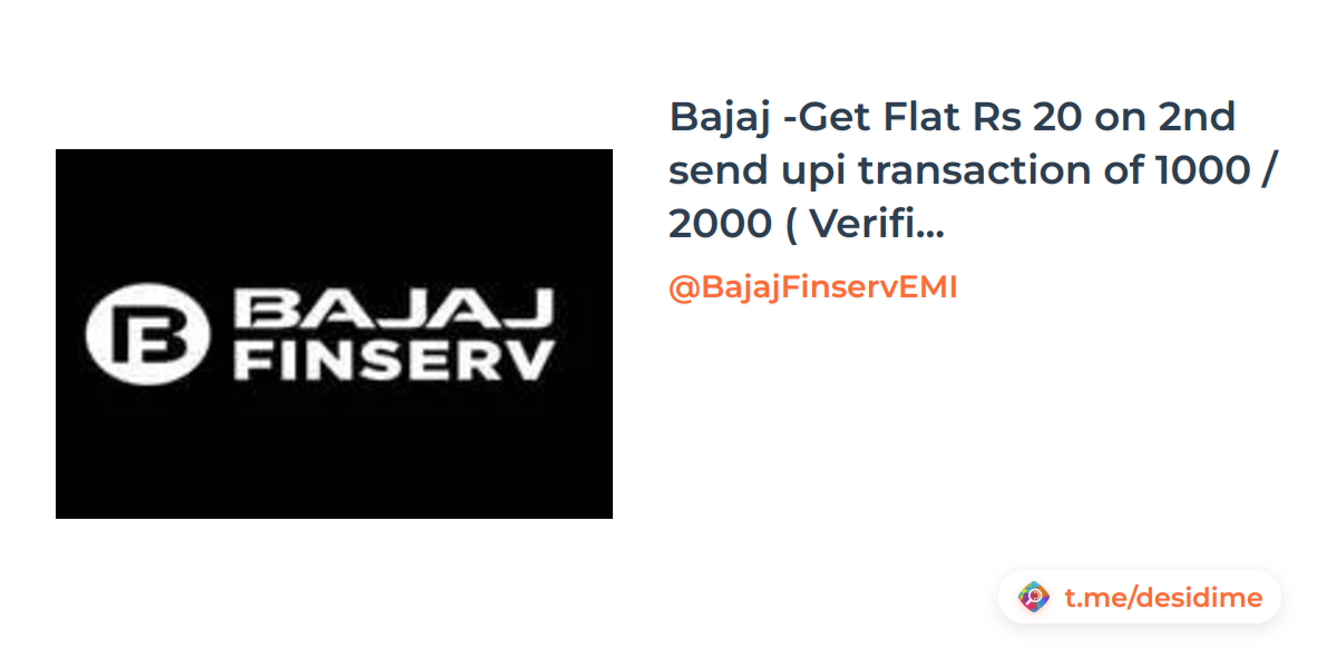 Bajaj -Get Flat Rs 20 on 2nd send upi transaction of 1000 / 2000 ( Verified Rs 20 after 2nd Transaction)