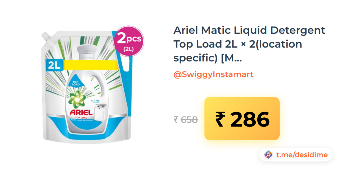 57% off on - Ariel Matic Liquid Detergent Top Load 2L × 2(location specific) [MaxxSaver] - Rs. 286