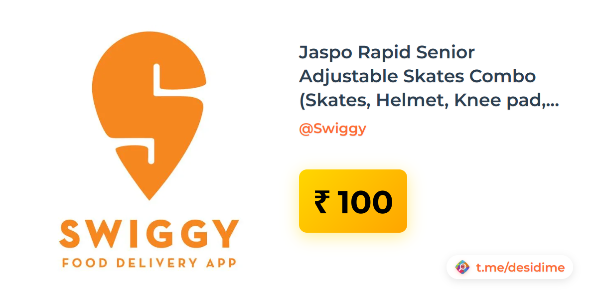 95% off on - Jaspo Rapid Senior Adjustable Skates Combo (Skates, Helmet, Knee pad, Elbow pad , Adjustable Key, Bag) Suitable for Age 6 to 14 Years - Rs. 100