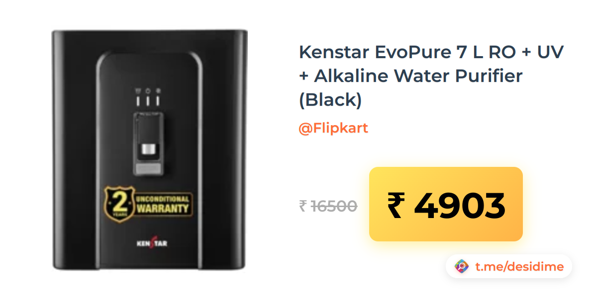 70% off on - Kenstar EvoPure 7 L RO + UV + Alkaline Water Purifier (Black) - Rs. 4903