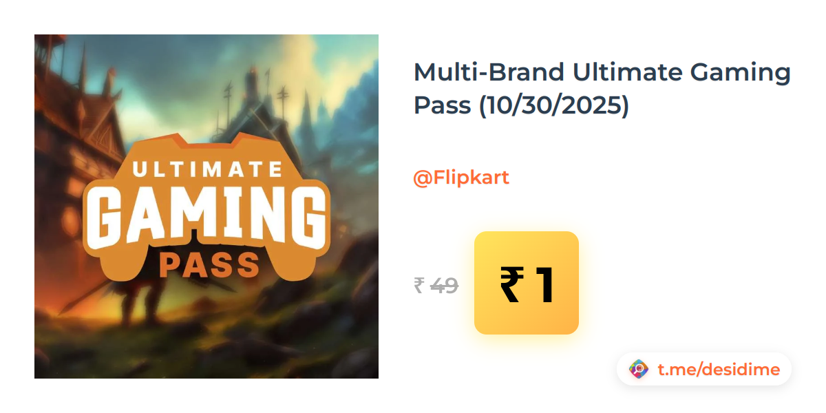 98% off on - Multi-Brand Ultimate Gaming Pass (10/30/2025) - Rs. 1