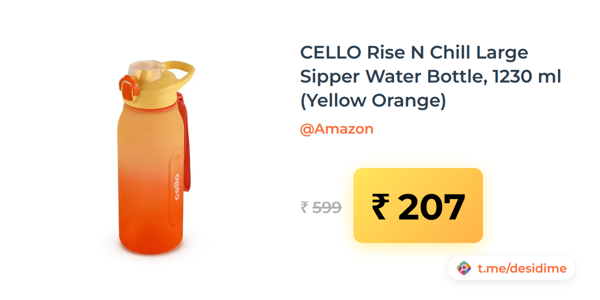 65% off on - CELLO Rise N Chill Large Sipper Water Bottle, 1230 ml (Yellow Orange) - Rs. 207