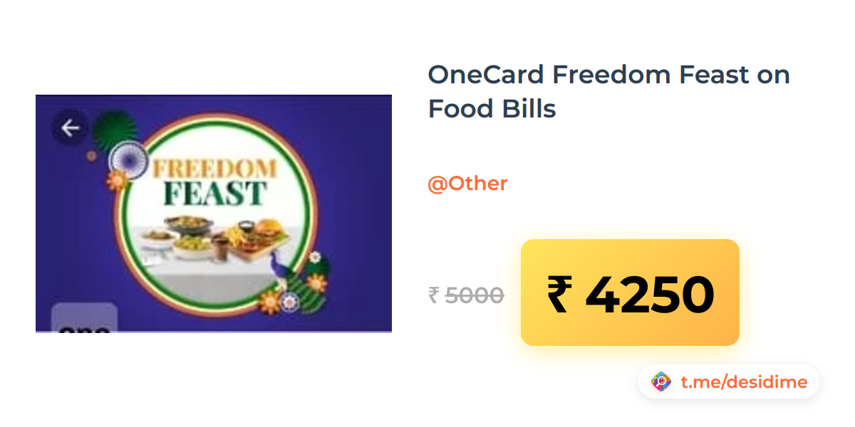 15% off on - OneCard Freedom Feast on Food Bills - Rs. 4250