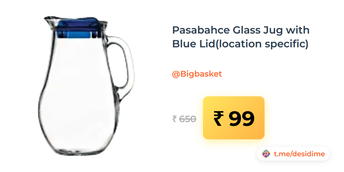85% off on - Pasabahce Glass Jug with Blue Lid(location specific) - Rs. 99