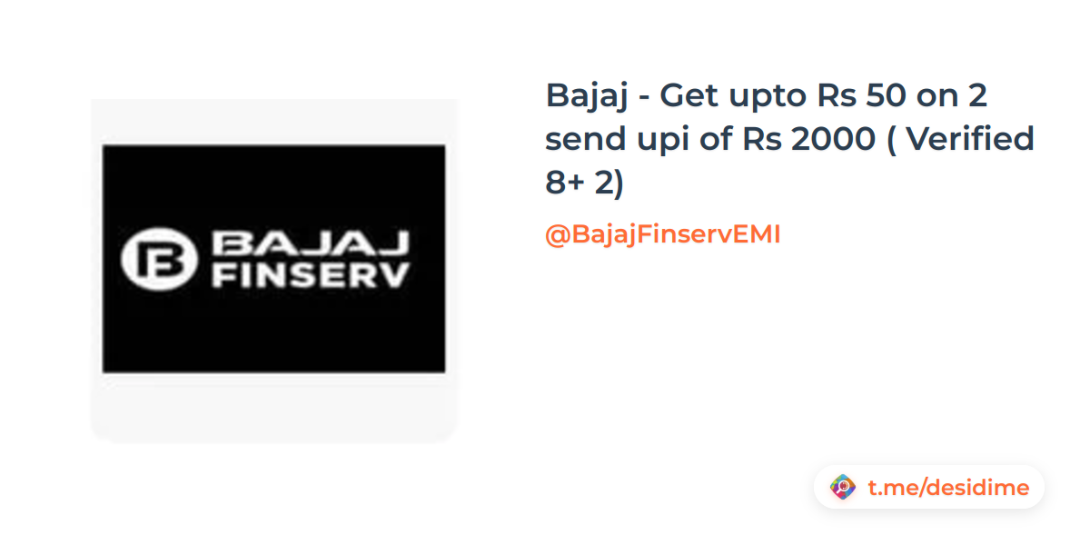 Bajaj - Get upto Rs 50 on 2 send upi of Rs 2000 ( Verified 8+ 2)