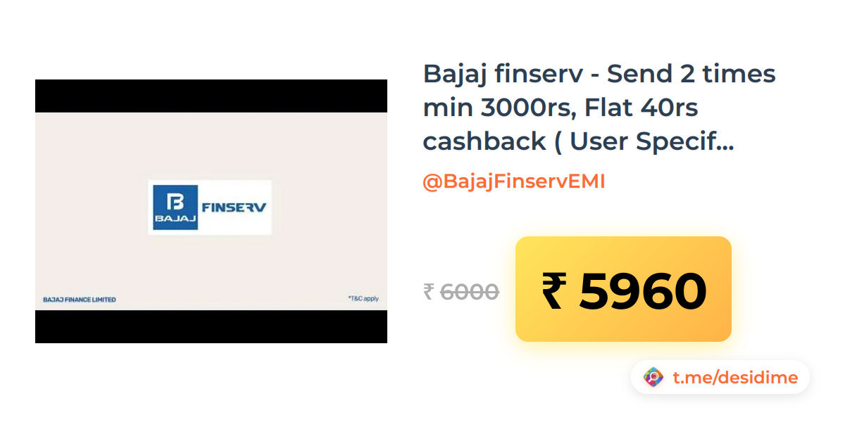 1% off on - Bajaj finserv - Send 2 times min 3000rs, Flat 40rs cashback ( User Specific) - Rs. 5960