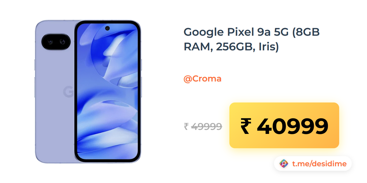 18% off on - Google Pixel 9a 5G (8GB RAM, 256GB, Iris) - Rs. 40999