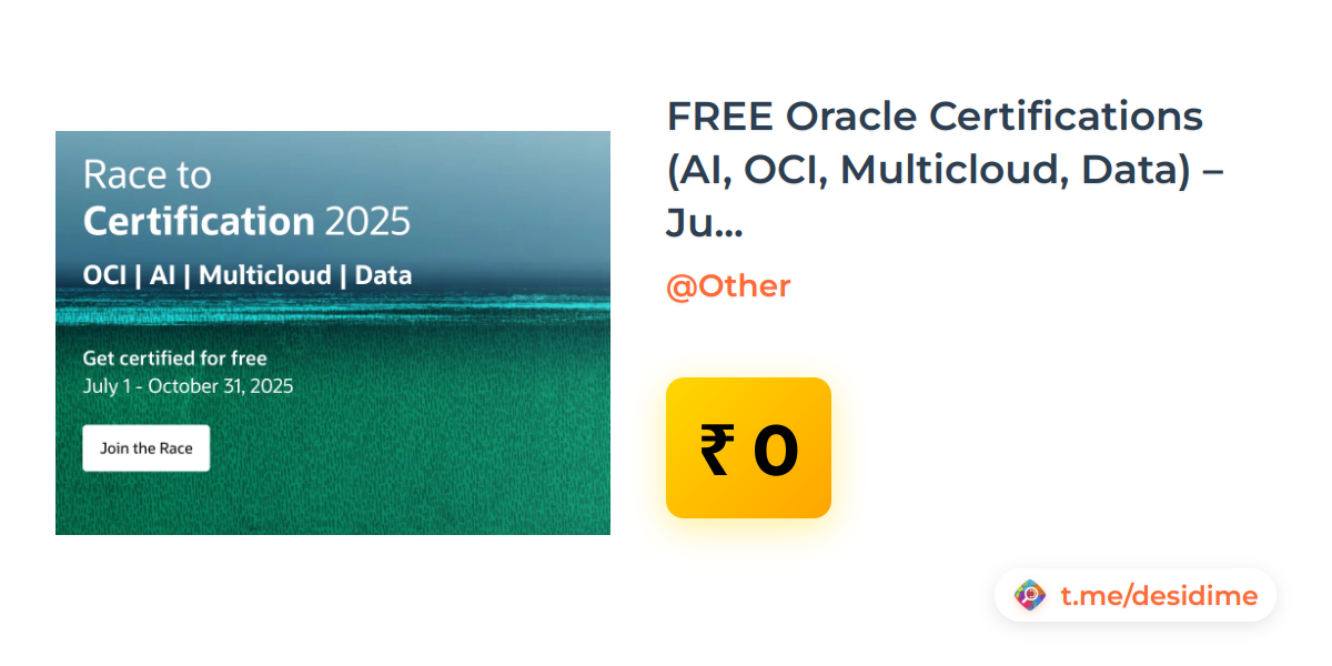 FREE Oracle Certifications (AI, OCI, Multicloud, Data) – July to Oct 2025 - Rs. 0