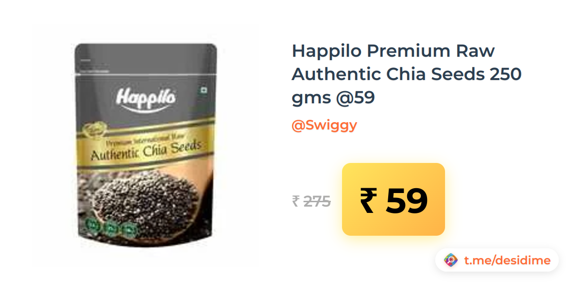 79% off on - Happilo Premium Raw Authentic Chia Seeds 250 gms @59 - Rs. 59