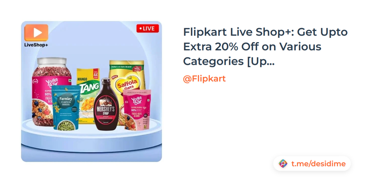 Flipkart Live Shop+: Get Upto Extra 20% Off on Various Categories [Upto 08:00Pm]