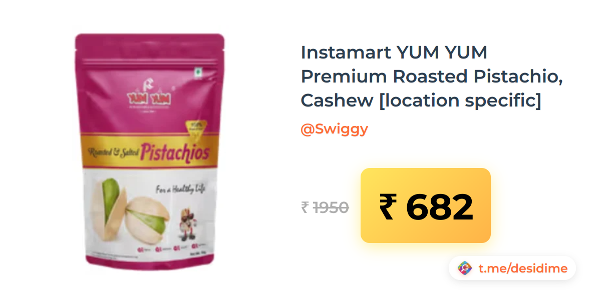 65% off on - Instamart YUM YUM Premium Roasted Pistachio, Cashew [location specific] - Rs. 682